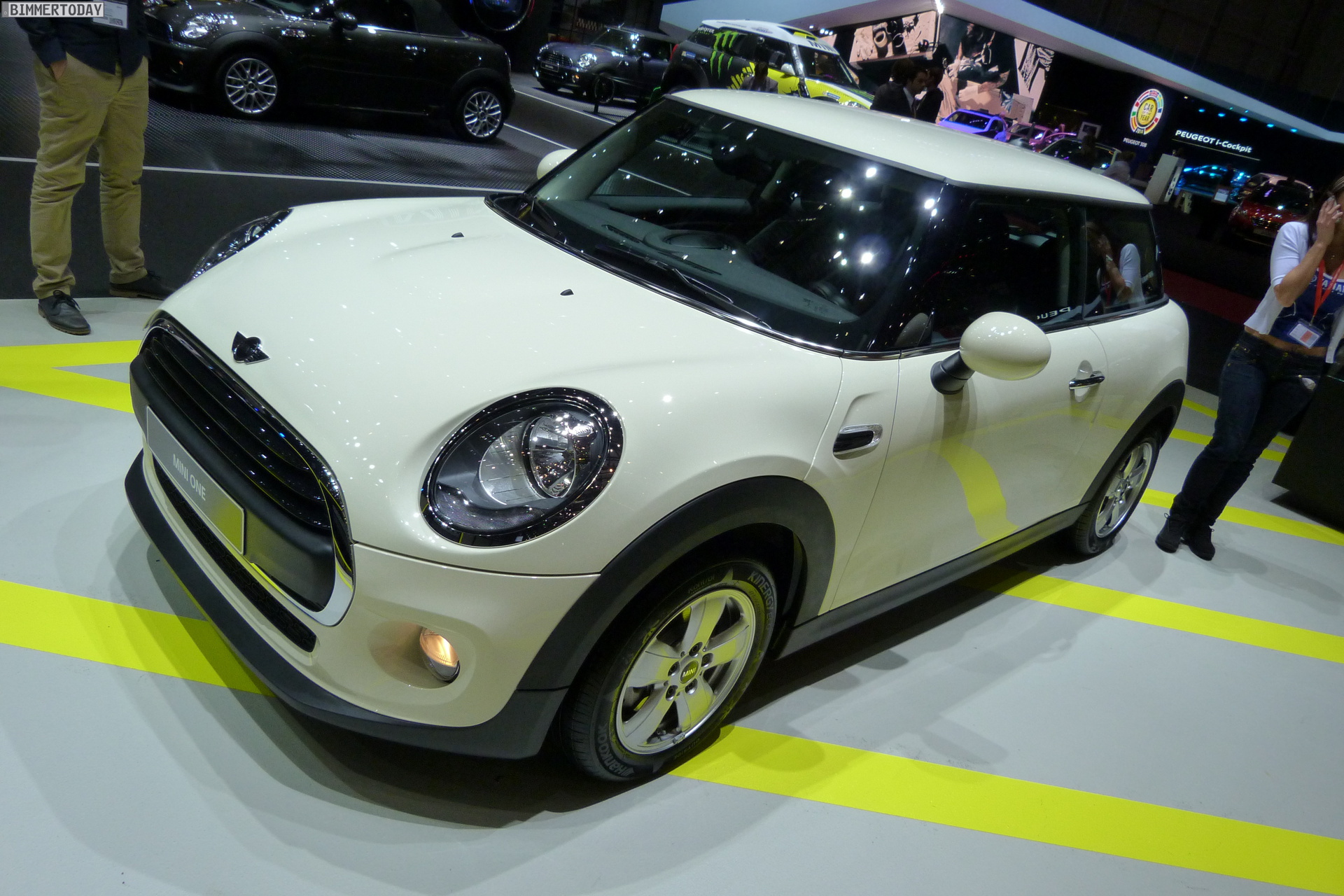 Wenn genügend Kleingeld vorhanden ist, lässt sich fast jeder Wunsch realisieren und nachdem wir bereits vom MINI Cooper D mit zahlreichen Karo-Elementen im Burberry-Stil berichtet haben, folgen nun zwei weitere Fahrzeuge vom MINI-Stand auf dem Genfer Autosalon 2014. Den Anfang macht dabei ein praktisch “nackter” MINI One F56 in Pepper White, der beinahe ohne Sonderausstattung auf die Messe gestellt wurde:.